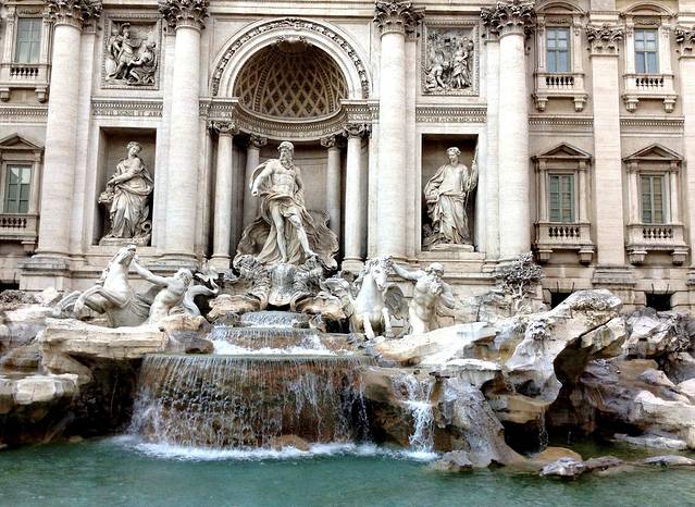 许愿池全名叫特莱威喷泉,又叫少女喷泉,在罗马市内众多喷泉中算最大的,也是全球最大的巴洛克 式喷泉。主体部位是驾着马车的大理石海神雕像,四周环绕着西方神话中的诸神,背景建筑是一座海神宫,海神宫的上方站着四位少女,分别代表四季。拜风靡全球的电影《罗马假日 》所赐,许愿池随之闻名于全世界,从此游客蜂拥、络绎不绝。