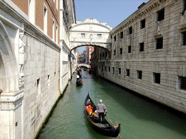 雷同的早餐过后,8:20向威尼斯本岛进发。通往威尼斯本岛需要乘坐渡船,渡船一直是由意大利黑手党把持的,独家经营,很牛气,从不等人。旅游业是威尼斯的主要产业,这里还有举世闻名的特色产品威尼斯面具和玻璃工艺品。意大利人喜欢喝咖啡,咖啡屋特别多,和我们许多城市的食品一条街很类似,屋外还搭上长长凉棚,配上色彩鲜艳、整洁明亮的桌椅。这里的规矩是:站着喝1-2欧一杯,坐下来喝价格翻倍,坐在外面喝再翻倍,有音乐伴奏则再再翻倍。因为意大利人“好色”,又有充足的闲暇时间,他们喜欢坐在屋外凉棚下,利用喝咖啡时看街景、看美女帅男,随时找寻陌生异性搭讪。这里干净卫生,没有飞扬的尘土,也不必关心PM2.5的数值。不过,欧洲各国有一个共同的让中国人很难受的方面——厕所特别少,如厕要收费,还贵,尤其是景区或闹市区。威尼斯收费1.0-1.5欧,在这里经营厕所的人很富有,开的是法拉利。