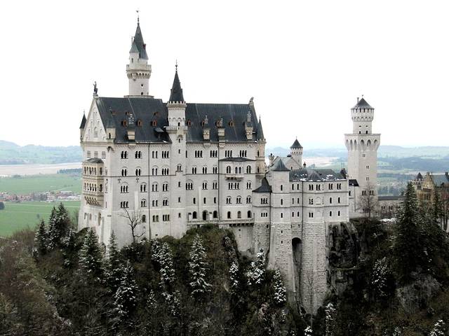 新天鹅堡建于1869年,是巴伐利亚 国王路德维希二世 的行宫之一。共有360个房间,其中只有14个房间依照设计完工,其他的346个房间则因为国王在1886年逝世而未完成。它是迪斯尼城堡的原型,所以也被叫做白雪公主城堡。关于这个城堡,关于它的主人,流传着很多美丽又哀伤、浪漫又凄凉的故事:国王的感情生活充满悲剧色彩,他的童年是与他年轻的表姑、后来的奥地利王后茜茜公主 一起度过的。茜茜公主15岁就出嫁了,她那美丽的倩影在年轻王子心中留下难以磨灭的印记。路德维希二世 一生未娶,沉醉在自己的童话世界里。可就在精心打造的童话城堡即将落成前夕,这个富于幻想的年轻国王突然离世,年仅41岁。新天鹅城堡是路德维希二世未完成的梦,德国人耗费巨资把他的梦变成了现实。今天,在拥有14000多个城堡的德国,它是最著名的一个,是受拍照最多的建筑物,是最热门的旅游景点之一。