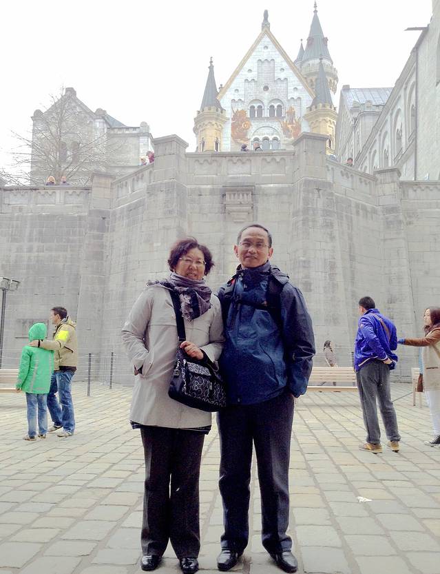 近几年中国崛起经济腾飞,出境游越来越热,欧洲线路也成了热点。阿华说,有人把“欧洲游”戏称为一道点菜——“就叫宫保鸡丁”。“就”—旧(谐音):在欧洲看不到上海那样的现代化,他们重视文物保护,喜欢老东西,以“旧”为宝,以“旧”为美。“叫”—教堂:欧洲教堂多,每个城市都有,且各具建筑特色,各有精彩故事,是游客必去之处。“宫”—宫殿:像教堂一样,宫殿肯定是城市里最为恢宏的建筑,宫殿外的壮观,宫殿里的辉煌,外来游客谁肯错过?“保”—城堡:欧洲城堡特多,比如我们此行的新天鹅堡即是其中最有名的一个。“鸡”—妓女:去阿姆斯特丹的游客会有参观红灯区的游程。“丁”—赌场筹码声:这是赌城蒙特卡洛的内容。大高个阿华是台北人,现住巴黎,说起话来仍然带有一点这些年大陆人早已听腻了的台湾腔——嗲。他不管说什么,总是轻声细语,不紧不慢,虽然欠缺点抑扬顿挫的煽动性,但温文委婉,具有亲和力。