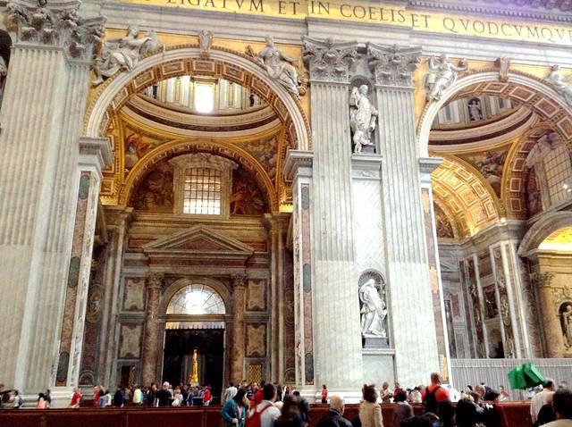 位于罗马西北角梵蒂冈高地上的梵蒂冈城是梵蒂冈国的首都、罗马教廷所在地、世界天主教的中心。它的北、西、南三面有高墙与罗马市隔开,而东面的圣彼得广场 则畅行无阻。在这片面积仅0.44平方公里、约1400人口、常住人口仅500的地区内,集中了一大批举世无双的艺术品和建筑杰作。建在耶稣大弟子圣彼得陵墓上的圣彼得大教堂是全城的中心,也是世界上最大的宗教建筑。