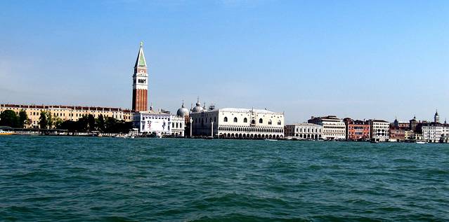 9:10到达威尼斯码头,9:30登船过渡。地导金晶是一位可爱、阳光的小胖妞。她介绍说,威尼斯始建于5世纪,建在离岸4公里的海边浅水滩上,平均水深1.5米。它由118个小岛组成,并以 177条水道、401座桥梁连成一体,有“水上都市”、“百岛城”、“桥城”和“水城”之称。在威尼斯,水道是城市的大街小巷,船 是唯一的交通工具,没有http://baike.baidu.com/view/4033.htm 、http://baike.baidu.com/view/6328.htm ,也不需要交通指挥灯 。威尼斯的独特风情吸引着世界各地的游人,本岛只有7平方公里,6000居民,但每年要接待2000多万游客……