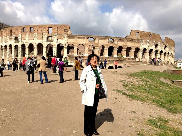 古罗马角斗场是古罗马的象征,建于公元72-79年,是强迫8万名犹太俘虏用工8年完成的。整个建筑占地2万平方米,周长527米,可容纳9万观众。据说当年角斗场开幕时,用5000头狮子 、老虎 等猛兽和由3000名奴隶、俘虏、罪犯及受宗教迫害的基督教徒组成的角斗士,在此持续进行了100天的表演。演出时,人与猛兽殊死搏斗,异常残酷。而人与人的角斗更加残忍,必须有一方死亡方可收场,否则双双处死。直至300多年后的公元405年,这种极端野蛮的竞技比赛才被制止。经历了2000年风雨侵袭的圆形角斗场,围墙半壁坍塌,当年生死搏斗的场地已残破不堪,只有四周的看台还保存得比较完整。多年前看长篇小说《斯巴达克斯》,对古罗马角斗场充满了好奇和向往,做梦也想不到此生能有机会亲眼看到它。