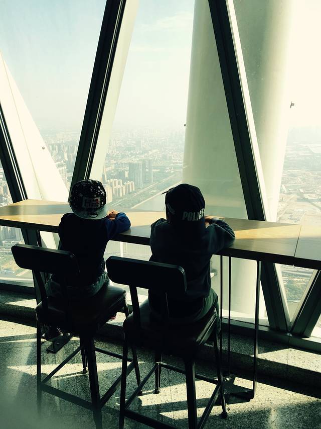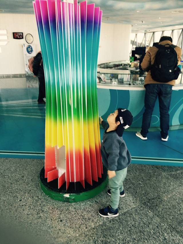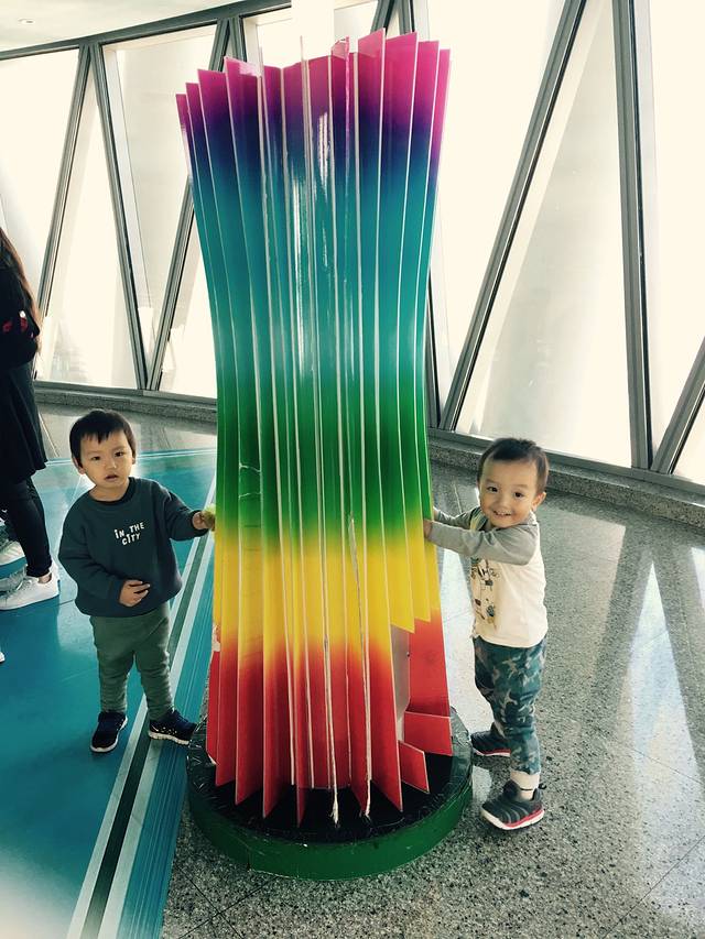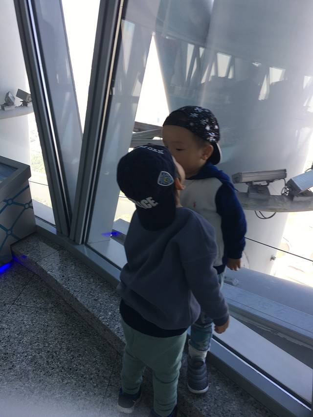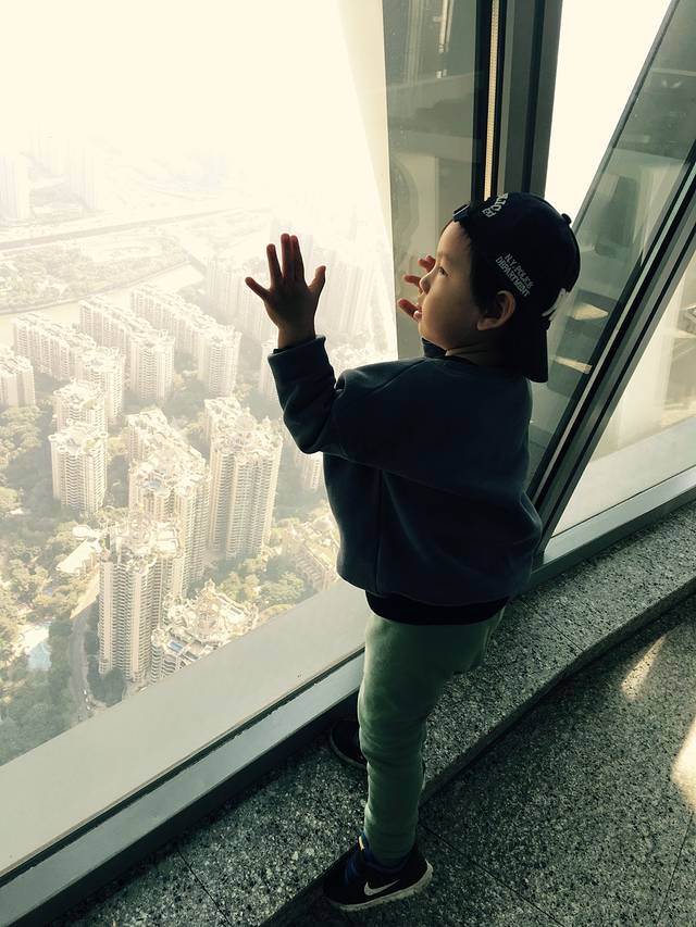 一一登过东方明珠,中央电视塔,而广州塔小蛮腰是这次旅行我们想来看看的地方。广州第四天,雾霾不算严重,但堵车较为严重,我们乘坐出租车从长隆北门50分钟后到达市区广州塔,单程40元,登塔后可以清晰地看到塔下风光。在108层镂空玻璃层,一一和辰辰毫不畏惧地趴在上面,着实显示了孩子们的勇敢胆量。随后,我们走进111层摩天轮,孩子们在摩天轮里兴奋不已,眺望远方,乐享高空。