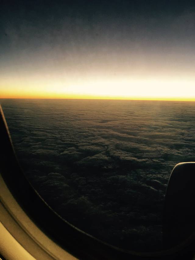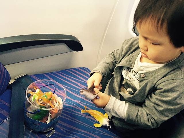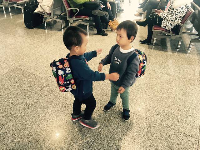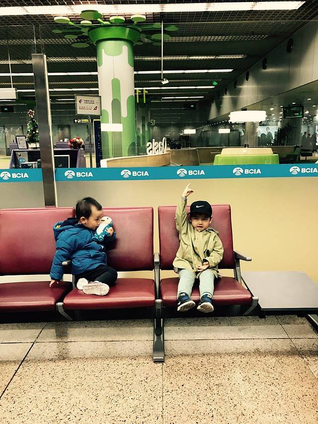 2016圣诞之时,两岁半的一一和比自己大两天的辰辰兄弟满心欢喜结伴登机出发。飞机15:55出发,19:15到达,共飞行三个多小时,一一在飞机上睡了一个半小时,醒来后美美吃了机上一餐,餐后留了便便在空中,纯属偶然。我们迎着晚霞向广州奔去,气流颠簸时刻,自语“哟~哟~”欢笑不已,下降的失重感给一一的小世界增添了一抹逗乐儿色彩。