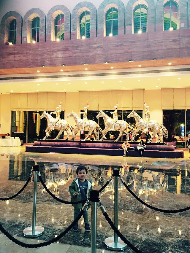 孩子们窜上窜下,成为了马戏酒店大厅的小主角