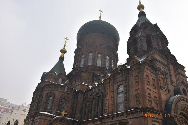哈尔滨站到圣索菲亚教堂,步行大概1.5公里,就到了。地方很好找。教堂进去是要门票的,就在外面拍了几张照片,然后步行到中央大街,都挺近的。