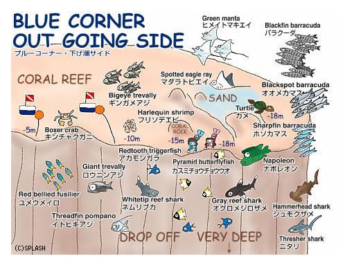 两天一共去了四个潜点,分别是蓝角(Blue Corner),新断层(New Drop Off),蓝洞(Blue Holes),德国水道(German Channel)。