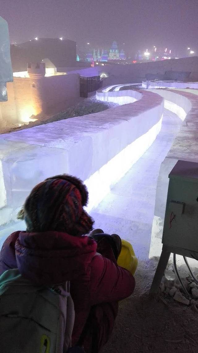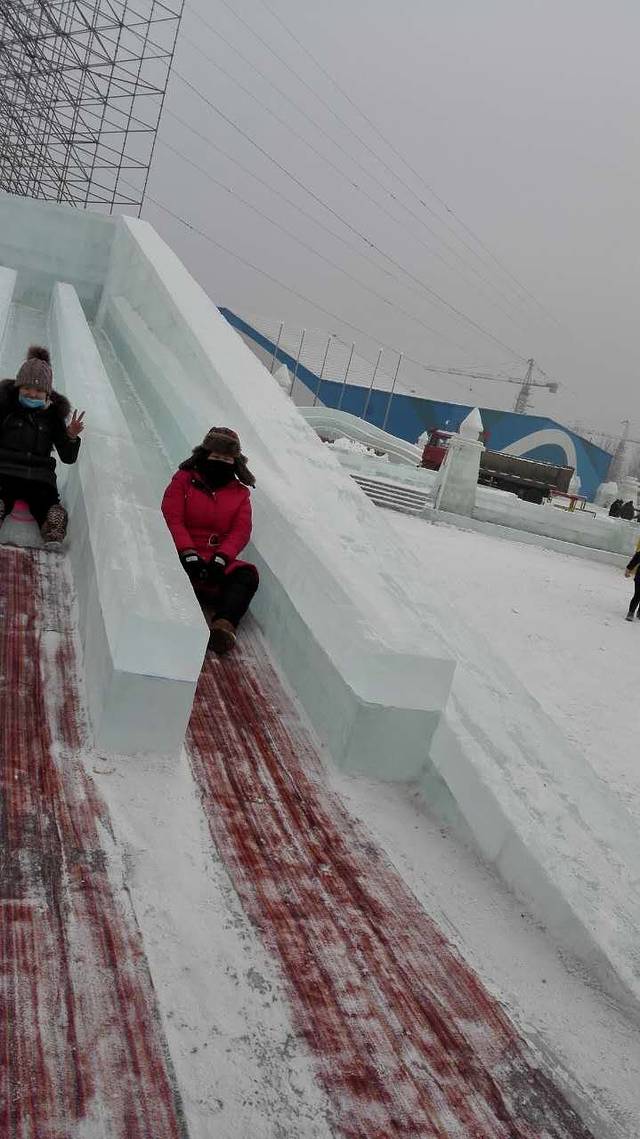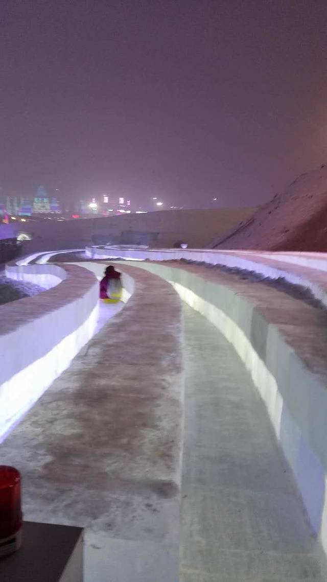 大家睁大眼睛看清楚了,就是这个传说中冰雪大世界里最刺激的320米大滑梯,我们足足排了5个小时的队,玩了18秒!虽然真的非常好玩,但是!在极寒的室外站5个小时是什么概念你们知道吗?用小猫(排队时认识的石家庄妹子)的话来说就是,“小姐姐,你看看我的腿还在不在的?”