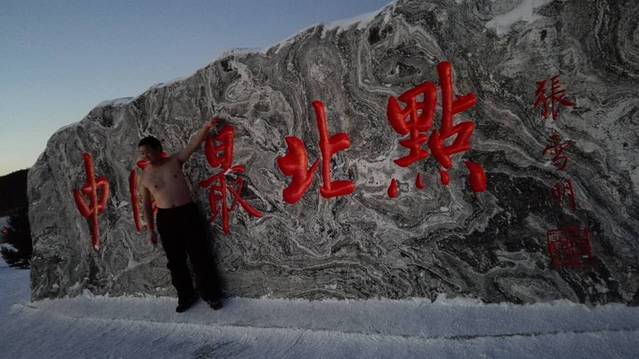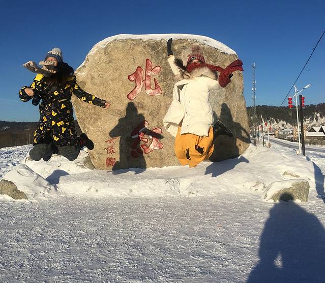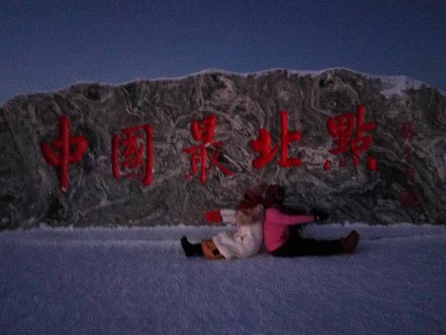 中国最北点的石碑人气也特别旺,我和君君药总那就都算小打小闹了,拍照的时候还看到有条铁血真汉子,以血肉之躯直迎了漠河的冰点寒石~好好好,你厉害,你脱的最光,你最先拍咯.