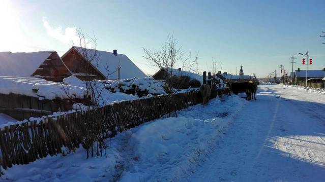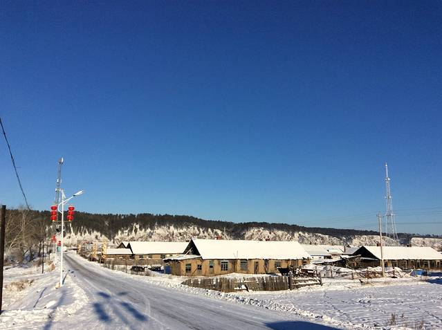 清晨,整个北极村都沉寂在积雪里。好可惜我的字典里可以用来形容美景的词汇实在是太有限,但是静默之下漠河的北极村真的望眼所及,就是一幅画。