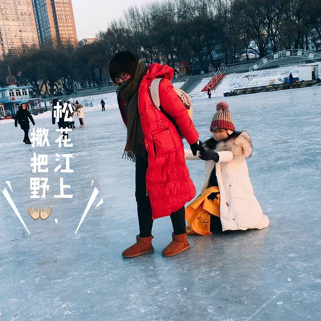 在冬季,完全冰封的松花江上是可以走人的,冰层大致有半米多厚,很多积雪踩上去软绵绵的。江宽约100多米,完全可以走过去,实在不想走的还可以乘马车过江。 在靠近防洪英雄纪念碑的地方还有滑雪圈、滑冰道、打冰嘎、开雪地坦克、滑冰、骑冰上自行车等游乐项目。跨年和元旦当天还可以在松花江上放孔明灯,为新年许愿为家人祝福。