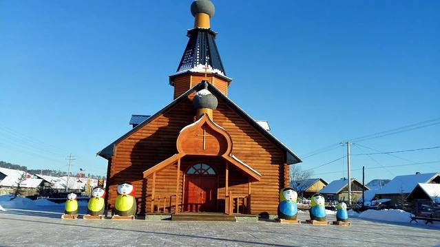 能在北极村看到如此Q萌可爱的教堂,小姐姐真心好心水呀,教堂斜对面还有一家俄罗斯小卖铺,看起来还真有点遥相呼应的意思。