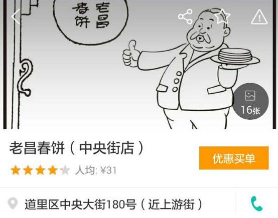 来哈尔滨有三样东西必吃马迭尔冰棍、冰糖葫芦、红肠,否则就跟就没有到过哈尔滨一样。但,真真的冰得好吃!由于手机直接冻嗝屁了没有照片,就另再推荐家地道老店——老昌春饼,去过的都说好!