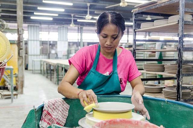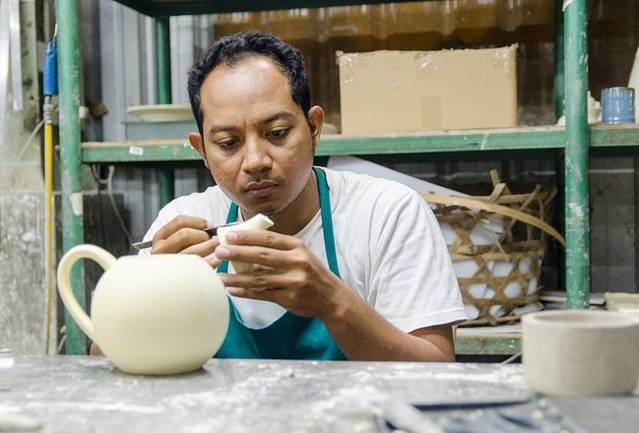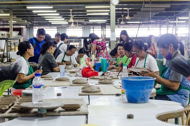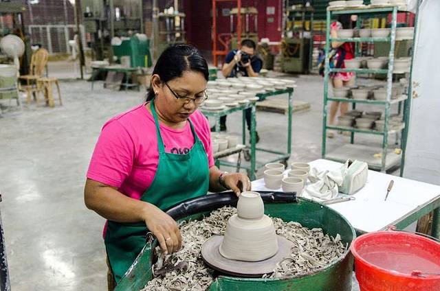 一直往里面走便是他们陶瓷的制造工厂了,里面几十名工人分工明确,有的制作粗胚,有的负责雕刻,有的负责打磨,有的负责加釉,有条不紊的进行着,即使游客从身旁走过,也是安安静静的坐着自己的本职工作,好似再说,这一群没见过世面的二愣子,我这不是在侮辱二愣子