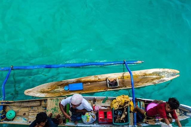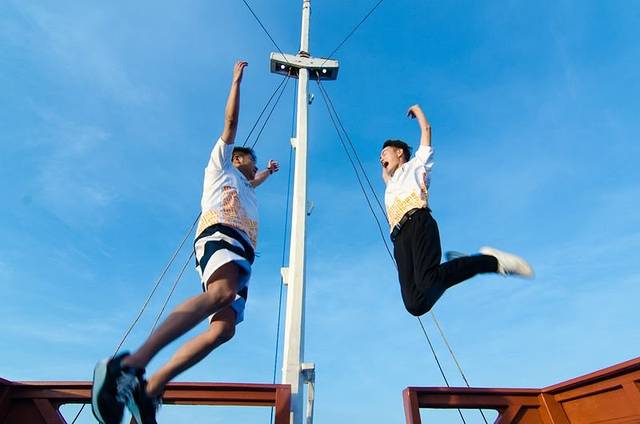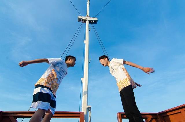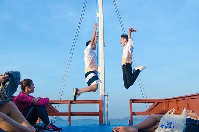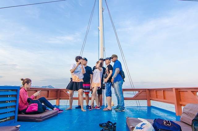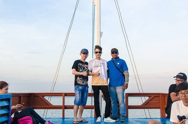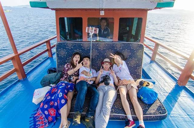 一上船,大家都玩嗨了,霸占好位置,开始各种凹造型耍帅。上图右边第一个是我们在拉布汗巴焦的导游,第二位是我们此行的导游黄导,中间被挡住的那位是我们上海组的随行摄影师,中间那位凹造型的是旅游印尼分部的,她旁边的三位都是印尼旅游局的工作人员,负责这次相关接待工作,感谢他们为这次旅行的付出。