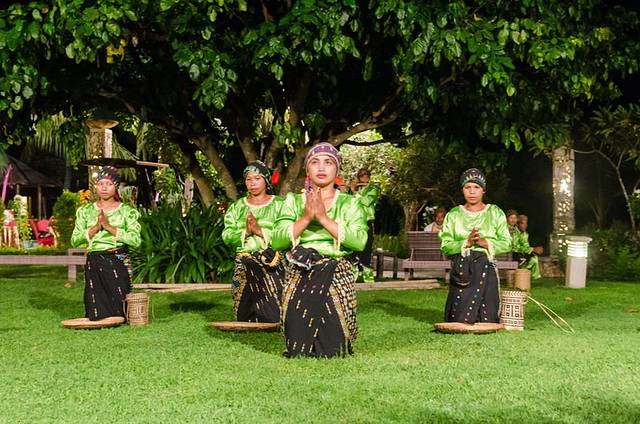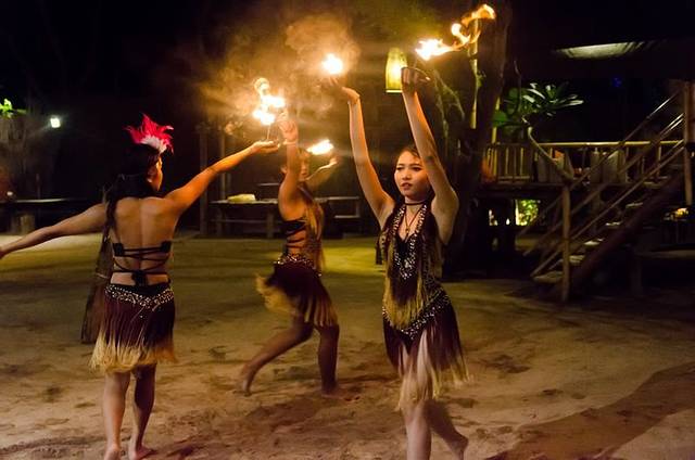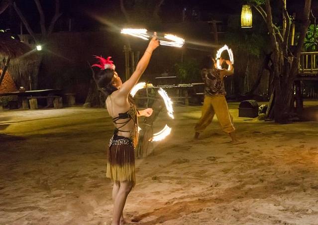就餐完毕,餐厅安排了巴厘岛特色火舞表演,和中国的杂技表演如出一辙,不同的是火舞以火为主要道具,用各种铁制的道具上面绑好麻布,沾上柴油,进行表演。相比女性表演的韵律感,男生表演更多的则是快节奏的紧张感。