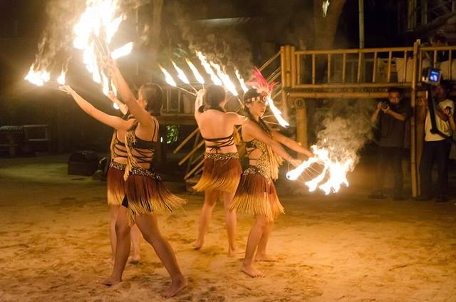 由于天气原因,夕阳并没有看到,但是巴厘岛的火舞却不会缺少。火舞一出现,小伙伴的眼神全部都被吸引住了,许多人都放下了手中的刀叉,纷纷拿起相机跑到沙滩上咔咔咔。