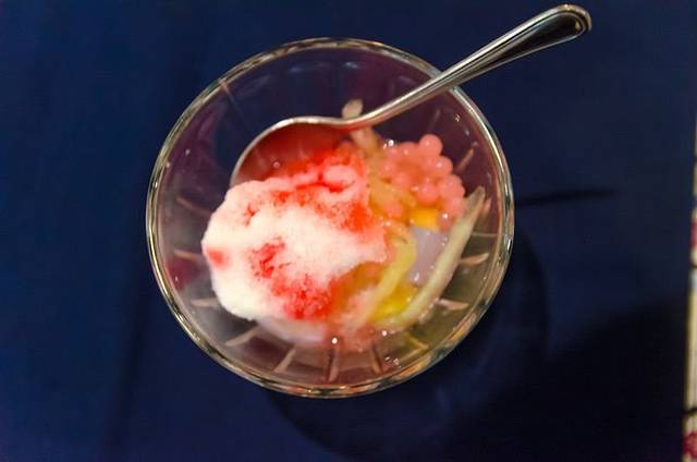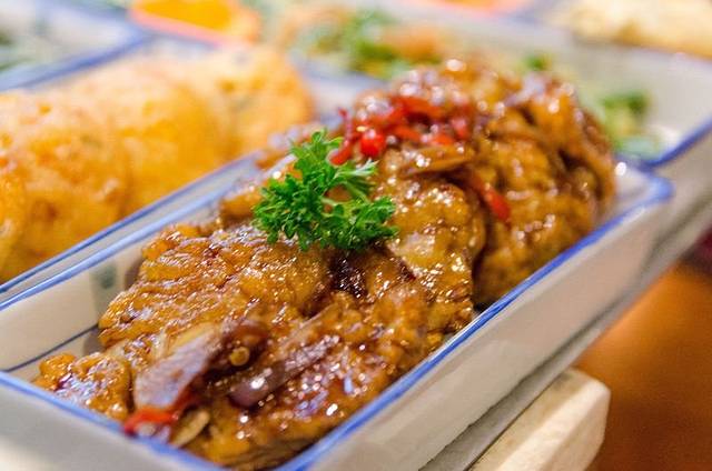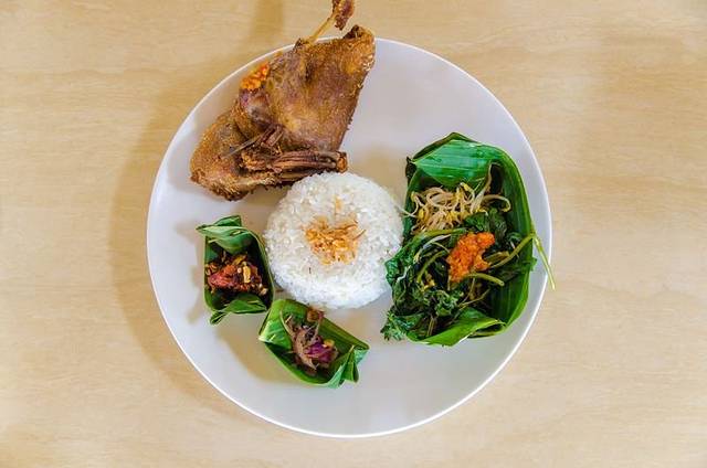 脏鸭餐,极具巴厘岛特色,这可是到巴厘岛必吃的一道美食!翠绿的酱碟,色彩鲜亮的半只烤鸭,再以绿色的青柠片和耍红的西瓜片作拌碟,整个构图颜色之丰,令人有惊艳之感。口味上烤鸭十分酥脆,味道个人比较喜欢,算是在巴厘岛最喜欢的特色美食了。