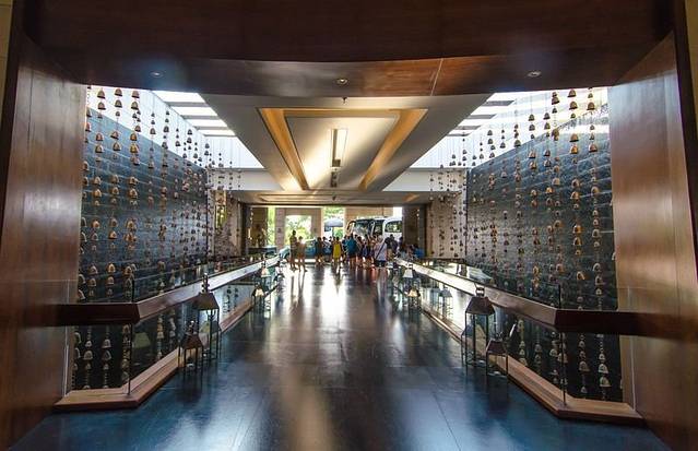博物馆的入口是一间很小的房子,然后沿着狭窄的阶梯往上,路过一座象神雕像后,变豁然开朗,犹如世外桃源描述的那般,“初极狭,才通人。复行数十步,豁然开朗”