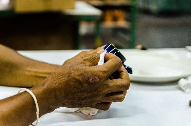 由于长期工作,基本上每个工人的手都非常的粗糙,没有一份工作是容易的,谁都心酸过,哪个没有