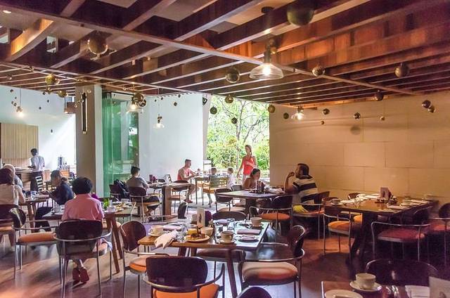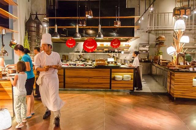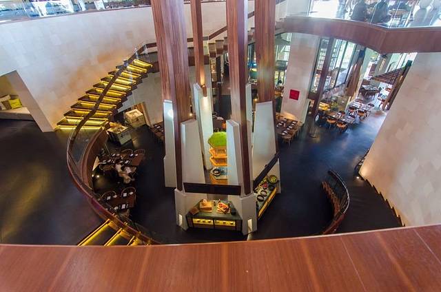 沿着楼梯下去便是酒店的自助餐厅