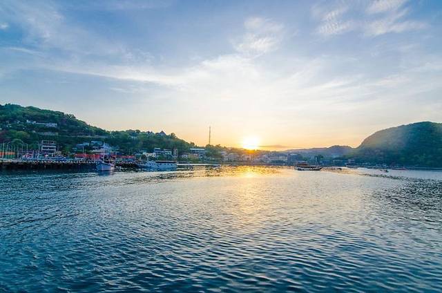 连续的起早,实在折腾的受不了,感觉身体被掏空。从酒店出发到达码头,刚刚碰到日出,码头上的船五颜六色的,大部分都是以蓝色为主,是海的颜色。