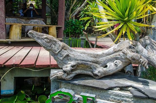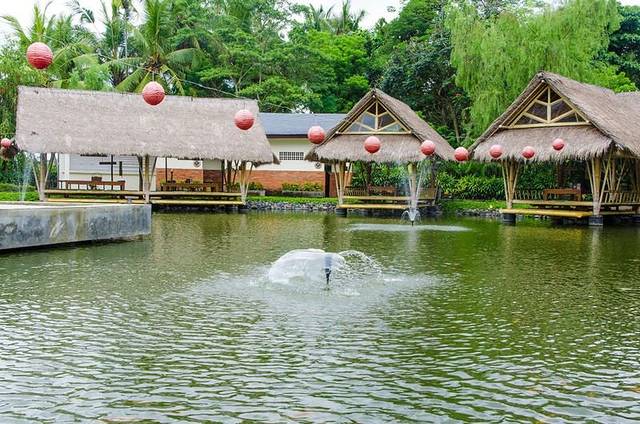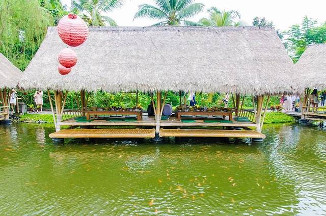 餐厅的环境非常的好,走过一片树林,树林里散养着的家禽欢呼雀跃,一个转弯,一片池塘,几座亭子落在眼前,池塘里成群的鲤鱼在绕圈嬉戏,偶有调皮的跃出水面,不知道印尼是否有鲤鱼跃龙门这一说法。