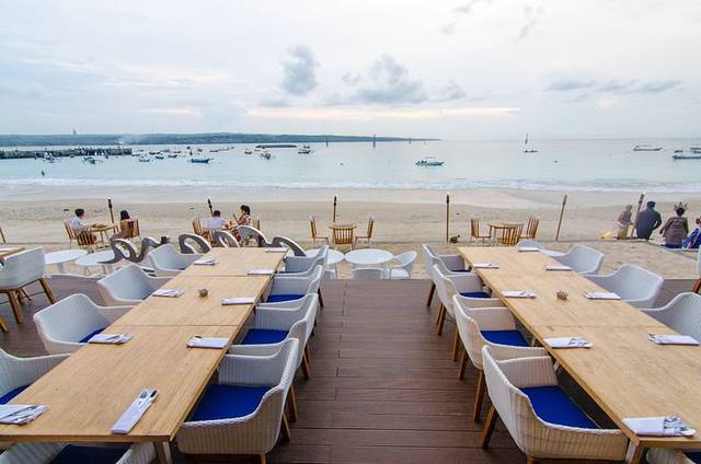 除了大名鼎鼎的日落海景,傍晚时遍地的露天海鲜大排挡也是金巴兰海滩的一大特色。你可以一边享用着海鲜烧烤、烛光晚餐,一边陶醉在金色的黄昏里,别有一番情调。
