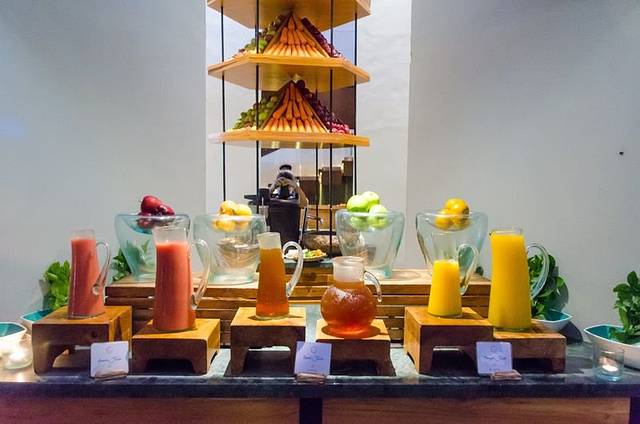 鲜榨的果汁,如果你是挑剔的食客,那么来这里没错了,就在旁边还有切好成长条状的各类水果,供您挑选现场榨汁,刚开始不知道,以为是吃的水果,最爱这里的菠萝,第二次去拿的时候,服务员说for juice,哈哈哈,尴尬死
