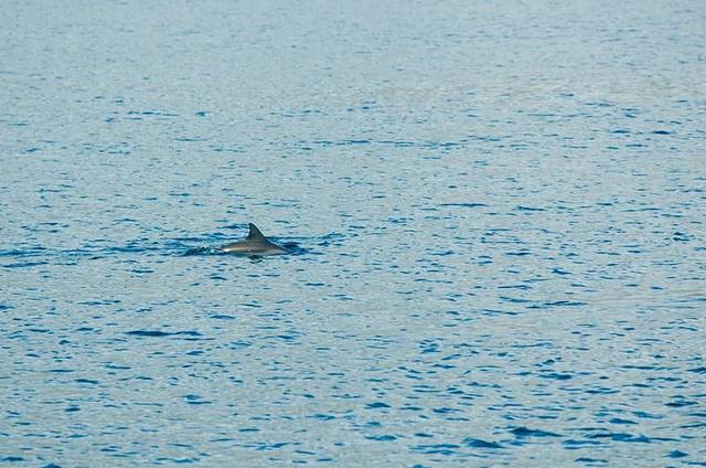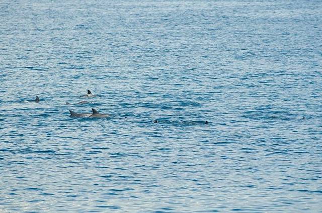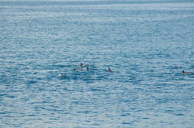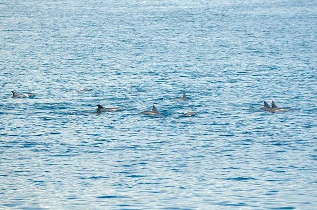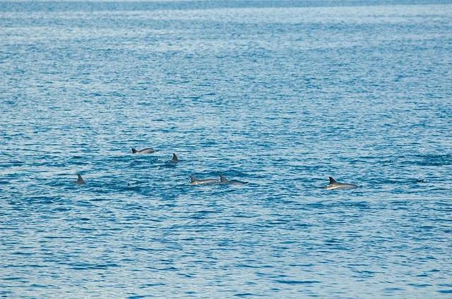 由于焦段不够长,只能用我的残副搭配上木木的70-200,那样焦距能达到300,还是可以打到的,就是成群的海豚并没有跃出海面,这是唯一有点小遗憾的地方