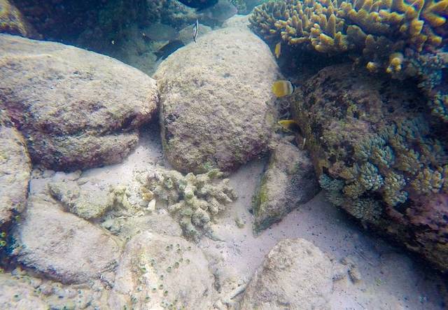 21.在粉红沙滩浮潜最好穿上脚蹼,身上最好穿上潜水衣,因为礁石很多,很容易划伤的,小伙伴基本上都负伤了