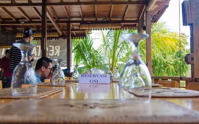 中午就餐的水上餐厅bale udang,Crispy Duck,品尝地道的脏鸭餐。刚抵达餐厅,就被餐厅门前一个通知吸引了,通知上用中文写着可以微信支付,国内的大小摊贩微信支付早已不是什么新鲜事,但是在巴厘岛还是少见的。