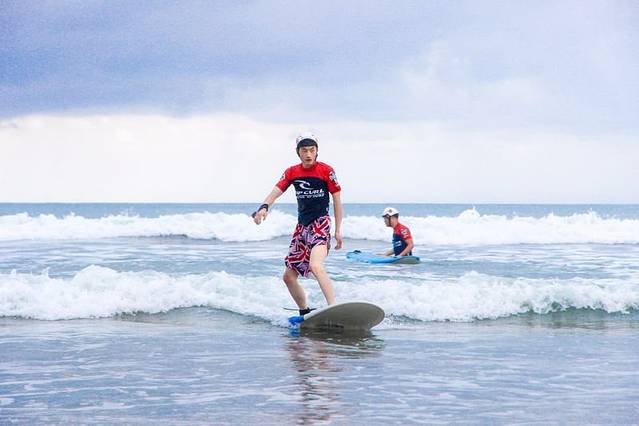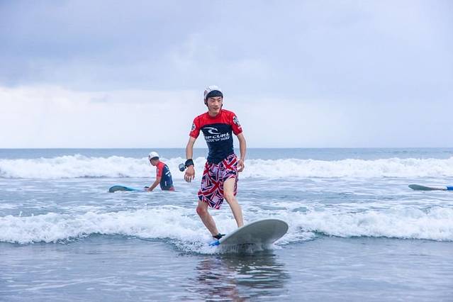 冲浪的时候一直在玩耍,到沙滩相机也没有带,所以只有一些别人拍的帅照了,哈哈哈。第一次冲浪,所以刚开始特别老实的听教练的教导,但是到了海上后,感觉这就是我的天下,第一次冲的时候,就成功站了起来,后来尝试了几次也是很容易。看到许多小伙伴一直被小浪打的往沙滩边退,告诉你们个小技巧,