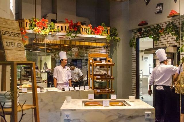 酒店的早餐在一楼的自助餐厅,刚进餐厅服务员就立马迎了上来,询问房间并热心的安排座位,当然如果觉得位置不满意也可以跟服务员说的,不会英语比划也是可以的。早餐种类真的是超齐全,根本吃不过来,汇集了各国美食,从中式到西式,从煎饼果子到汉堡牛扒,应有尽有。