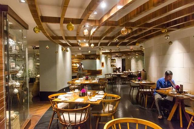 因为桌子比较矮,所以餐厅将桌子下面做空了,用餐的人可以将脚放下去,下面有个竹筏类的东西放脚,超级有趣又贴心的设计。