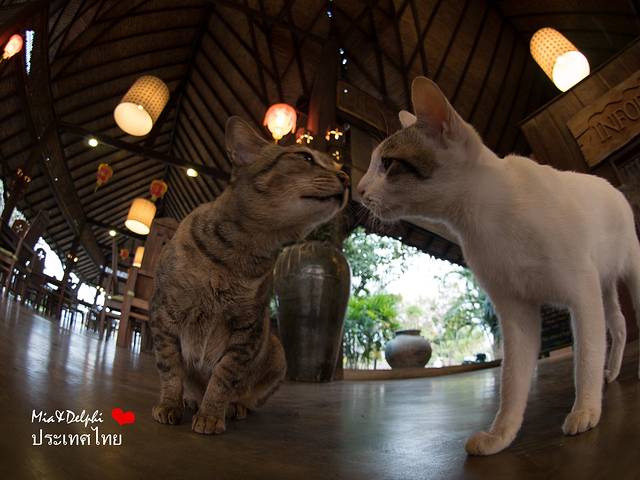 酒店里有几只小猫,不亲近人,只是远远的看着你
