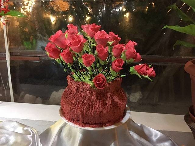 酒店送了鲜花铺床给蜜月的我们。房间三面是窗户,早上睁眼就能看到大海。