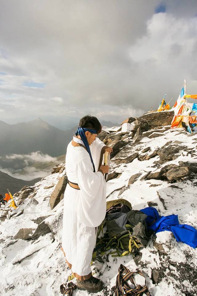 登顶那一刹那,之前付出的所以辛苦都是值得的! 感觉脱衣服,换上自己辛辛苦苦背了4个多小时,爬到5267米的装备
