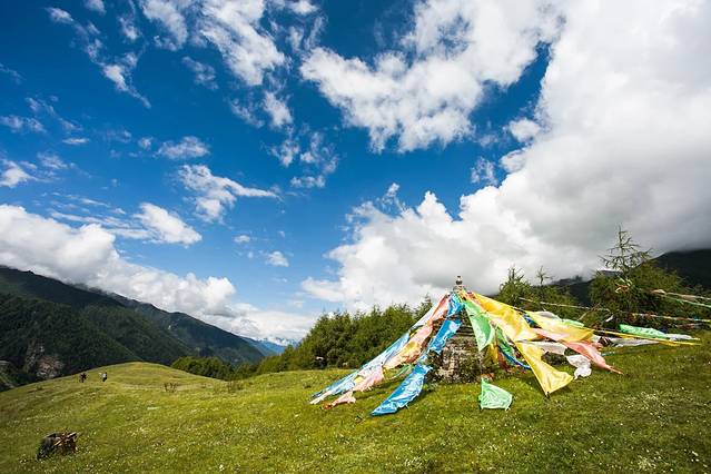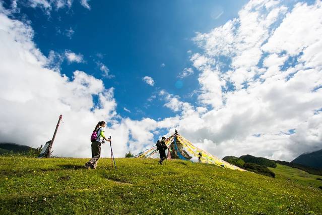 8月的高原、闻着新鲜的马粪牛屎味,看着漫山遍野的野花绽放,拍照的拍照、打闹的打闹,来到锅庄坪,