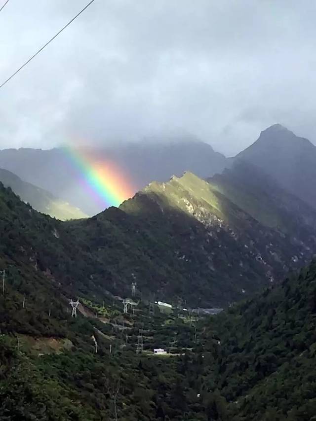 大家集合完毕,坐上了回往成都的车,可能是山神看到我们的辛苦,在我们离开之际还给我们来了一个彩虹作为告别