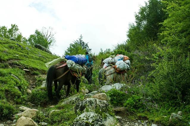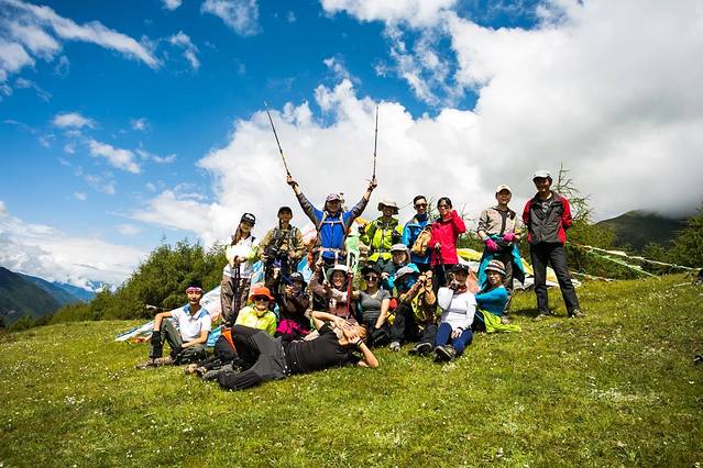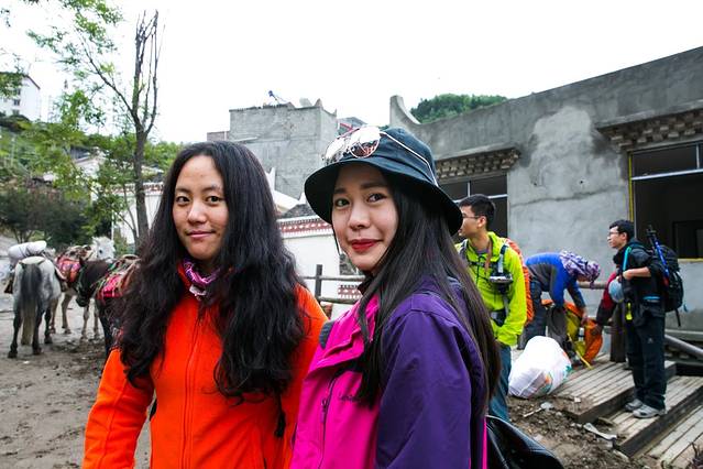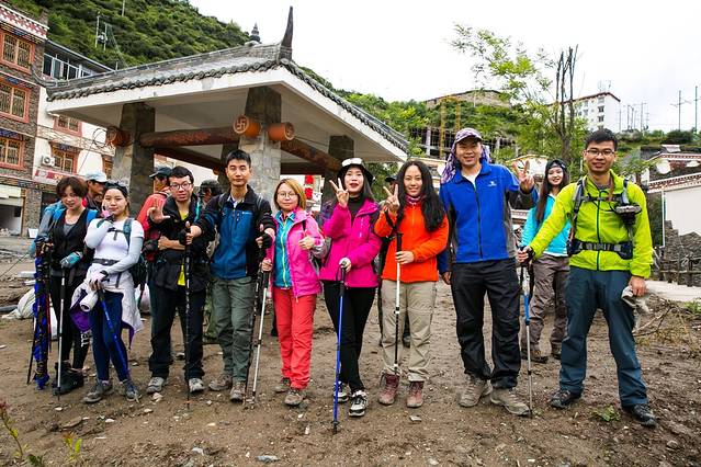 这时向导钟哥和马帮也来了、我们把大包基本就用马驮了,趁大家托马的间隙,一群小伙伴先拍上一张。