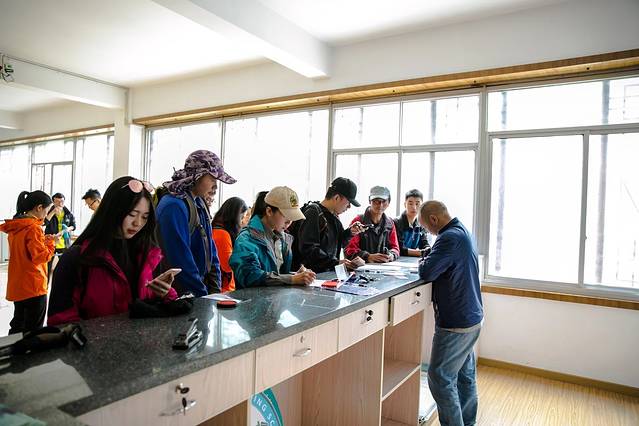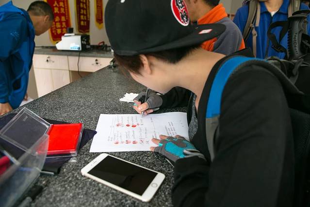 出发前去办理相关手续、因为三峰才出事、我们也多一份小心,我还买了两份保险,买好门票、意外事故相关手续签字画押,有一种背卖身的感觉呢。