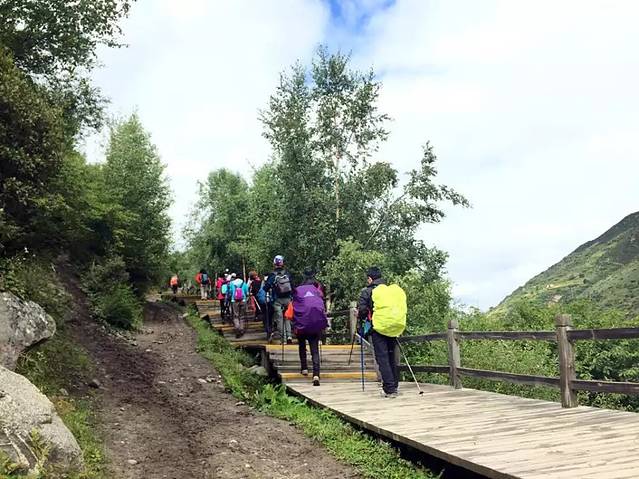 大家兴趣不错、走过一部分木栈道、验过门票、大家就开始爬山了