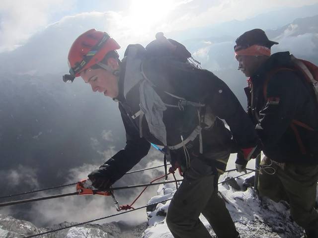 还有一些地方,实在太陡了。借助着向导爬上去放下的绳子。小心翼翼的向上前进着