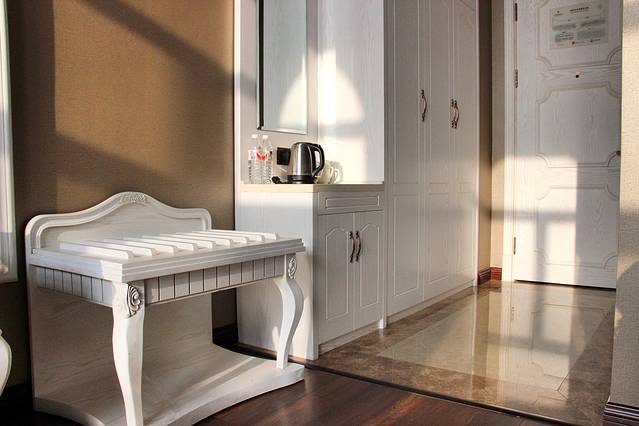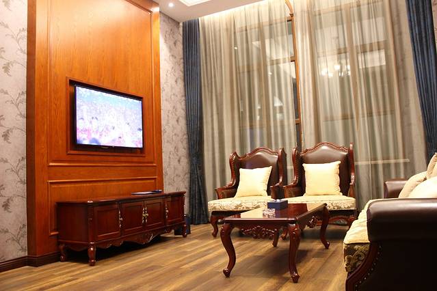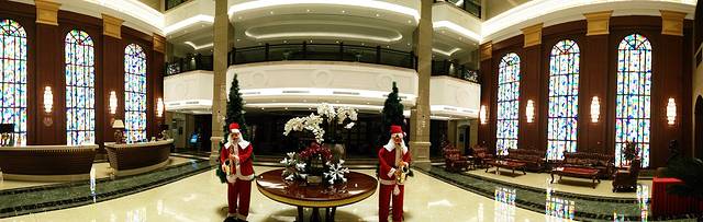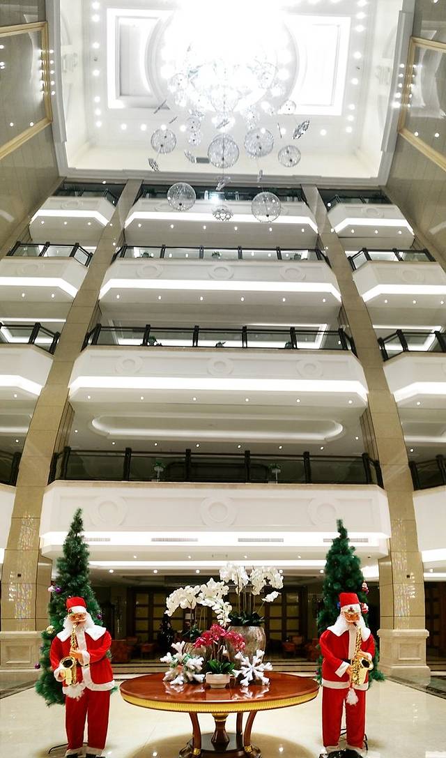 酒店大厅宽敞高挑,琼宇直达五楼,装修更是富有西方城堡风。