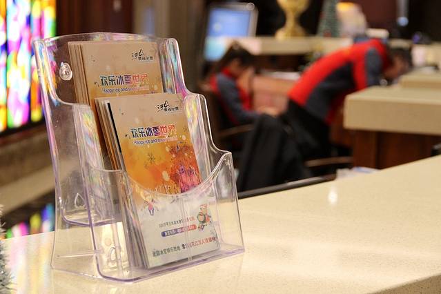 酒店前台放置着欢乐冰雪世界的园区说明书,方便游客随时了解景区的概况。