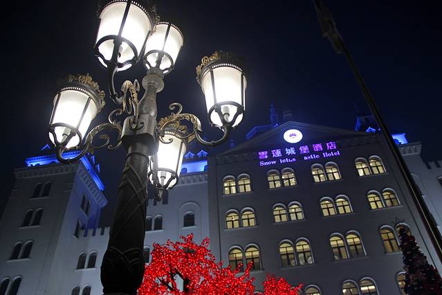 欢乐冰雪世界雪莲城堡酒店,位于哈尔滨东北角,座落在松花江与呼兰河交接处,距离哈尔滨市区约30分钟车程,距离哈尔滨太平国际机场约70分钟车程。具有典型的北欧建筑风格,洁白的外墙与冰天雪地融为一体。幽蓝的灯光打照出一个典雅的童话故事。