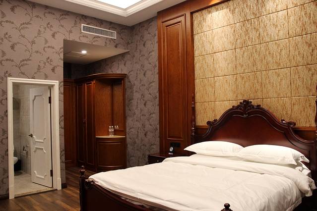 酒店配备了套房、观景标准房、内窗标准房、暗窗标准房和大床房等多种房型,可以满足不同人群的需求。特别强调解释一下这里的暗窗标准房,前面说过,欢乐冰雪世界的滑雪场起点是雪莲城堡酒店的五楼背面,也就是酒店的背面是依山而建,此面客房是不采光的。