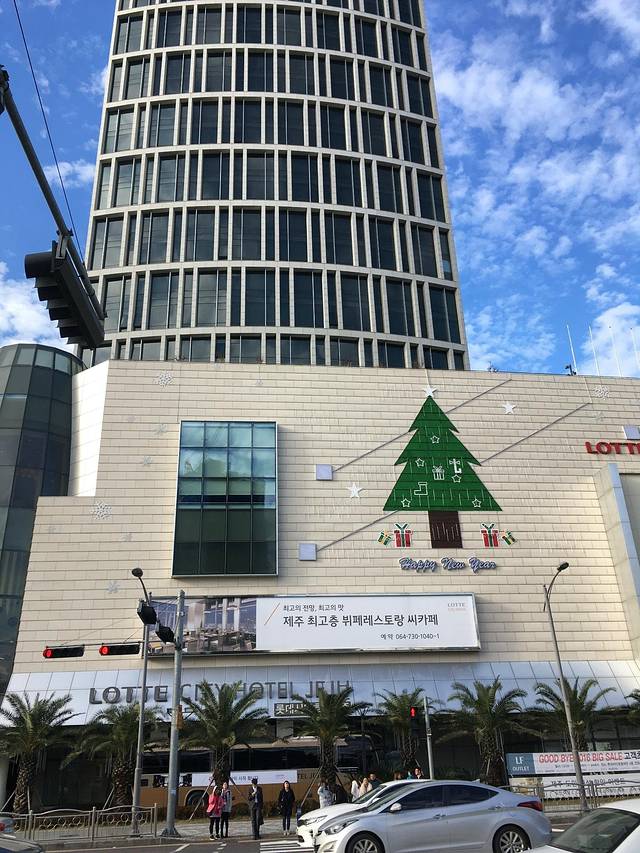 乐天免税店,离我们住酒店很近,步行10多分钟就到。